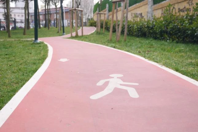 Fitness trail markings can be installed in small areas because the designs are scalable.